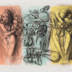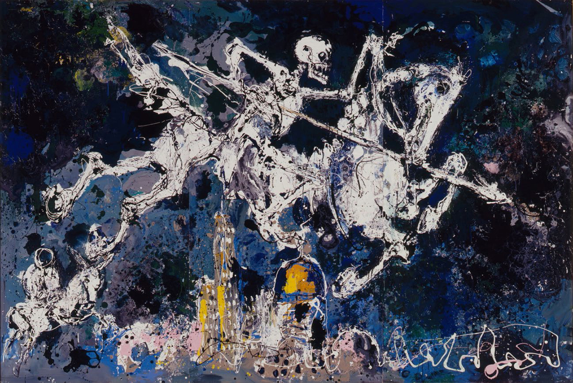 | Born in 1921. Upon his return from the war, he was inspired by Stravinsky’s music and started producing avant-garde paintings. He exhibited at the Yomiuri Independent Exhibition in 1949 where he also made his fundamental debut as a painter in 1951 with the works “Rain” and “Wind”. From early on, he tackled social issues through his practice. Impressed by Tokyo National Art Museum’s seminal Mexican Art Exhibition in 1955, he visited Mexico often and found revelationary inspiration, particularly from the Mayan culture. From this point, he developed a unique style that superimposed contemporary images onto the ancient patterns of the Mayan civilization in vivid colours. Together with Siqueiros and other artists, he went on to make many large mural paintings. Examples of these can be seen in train stations such as Yokohama and Kitakami. |