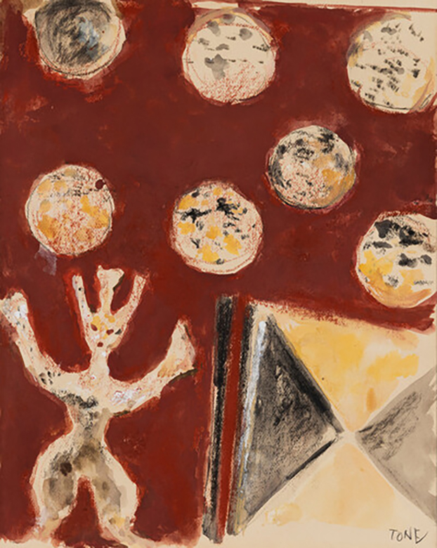 | 1921年生まれの利根山光人は、戦後、ストラヴィンスキーの音楽に感銘を受け、前衛的な絵画を制作。その後、社会派画家として活躍し、メキシコ美術展をきっかけにマヤ文明に魅せられる。鮮やかな色彩とダイナミックな構図でメキシコの太陽や自然、古代文明を描いた作品は「太陽の画家」と呼ばれ、日本のみならず海外でも高い評価を得た。パブリックアートや壁画も多数制作し、メキシコ政府の授与する文化勲章アギラ・アステカ賞を2度受賞。晩年はアルテ・トネヤマを設立し、美術教育にも尽力。戦争体験に基づいたヒューマニズムが根底に流れる、力強く情熱的な作品世界は、多くの人々に感動を与え続けている。 |