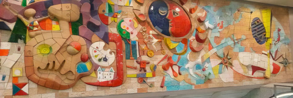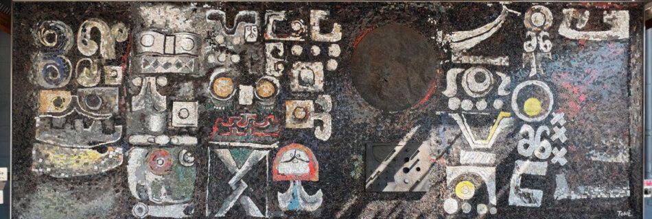 1989年、陶板壁画、聖徳大学附属小学校 ふれあい広場 (千葉県松戸市) 「ここ30年近く毎年毎年よくも聖徳の壁画を作ったものだ。作った方も作ったものだが、これを作らせた方も作らせたものだ。俺の作品の歴史は、聖徳の中にあ …